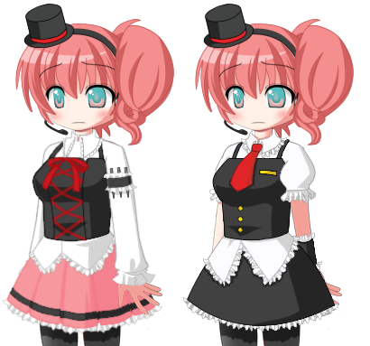 右側は通常衣装の1-2だけニーソを統合していなかった事に気づいて合わせてみたもの。