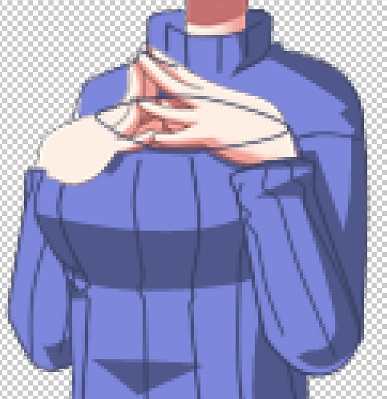 全身素体の「ロングセーター(縞・白黒)2」を見ていたら、素体に胸はないけど腕が胸より奥にあるように見える。